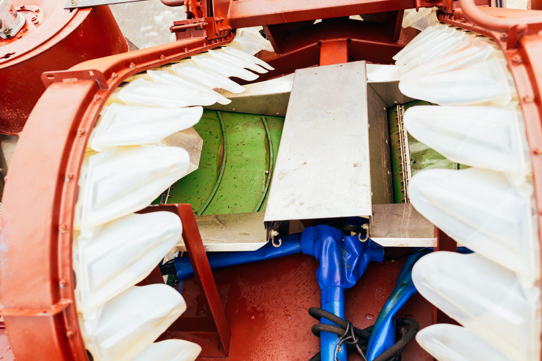 Wyzwaniem technologicznym dla konstruktorów było niejednoczesne dojrzewanie owoców i konieczność wykonania wielokrotnych przejazdów roboczych maszyny, przy zachowaniu dbałości o delikatne pędy roślin.