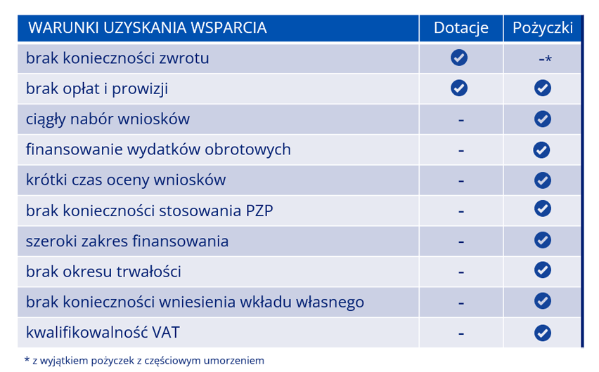 Główną formą tego typu wsparcia są pożyczki udzielane i zwracane na preferencyjnych warunkach. Stanowią one coraz częściej wybieraną alternatywę dla dotacji, a ich rola na przestrzeni kolejnych perspektyw finansowych stale rośnie, dlatego warto je znać i brać pod uwagę przy szukaniu możliwości finansowania inwestycji rozwojowych.